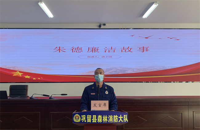 “朱德总司令逝世前不只一次地讲过,我只有两万元存款,这笔钱不要动用,不要分给孩子,把它交给组织,做我的党费。他还说,子女们应该接革命的班,继承艰苦奋斗的光荣传统,而不是接金钱和物质享受,让他们接受钱则害了他们。从这种高尚的品德中,作为同样是为人民服务的森林消防员,我深深的认识到与自己思想觉悟的差距。”分队长唐卫国分享时谈到。