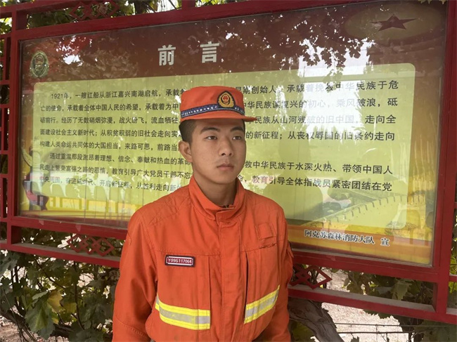 回望过往的奋斗路程,我们党一路走来的不容易。眺望前方的奋斗路,作为当代新时期的森林消防救援人员,我们生在红旗下,长在春风里,我将时刻为理想和使命而努力奋斗,牢记“对党忠诚,纪律严明,赴汤蹈火,竭诚为民”训词精神,永远做党和人民的忠诚卫士,守护好祖国的绿水青山,守护好人民群众的生命财产安全。