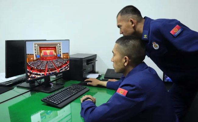 “结合岗位实际学习贯彻党的二十大精神,以事明理、寓理于事,才能进一步加深理解。”该大队领导介绍,他们注重在增强学习党的二十大精神实效上下功夫,立足本职岗位、竭诚为民奉献,争做让党和人民放心的守夜人;赓续像胡杨一样守望南疆的奉献精神,扎根祖国边疆、敢于赴汤蹈火,争做红色精神传承的火炬手,永远做党和人民的忠诚卫士!