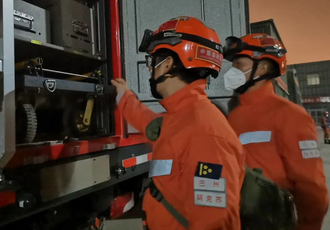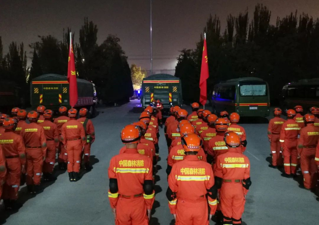 地震发生后,支队迅速启动应急响应,按地震救援行动方案组织拉动,阿克苏大队65人,10台车,携带装备200件套,作为第一梯队随时做好出动准备,支队营区指战员作为第二梯队随时做好增援准备。
