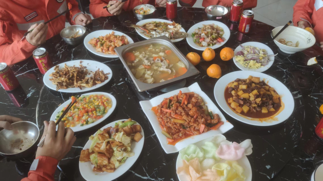 二是组织会餐提高伙食质量。在当前疫情防控形势严峻、物资采购不便、物价偏高的情况下,大队精心安排,每周组织会餐,做到饭菜品种多、花样新、质量高,膳食搭配科学营养,进一步提升消防员满意度和幸福感。