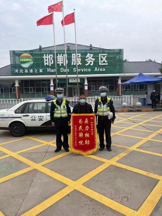 时隔近两个月,司机专程赶到邯郸服务区送来的锦旗,表达了对高速交警的感谢。