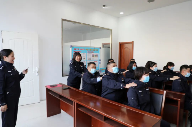 心理健康辅导服务队先后前往交警城关中队、洪洞东高速口疫情防控检查点、网安大队,通过焦虑量表心理测评、“引导式内观--想象海滩”放松法、蹲蹲乐、手指操、集体按摩操、“人椅”等心理调节方法、技巧,有针对性地为一线民辅警开展心理疏导服务,传授他们基本的心理调适、情绪解压、压力舒缓等方法,帮助长时间战斗在抗疫一线的民辅警克服焦虑心理,缓解紧张情绪和身体压力,锤炼更加过硬的心理素质和战斗本领。