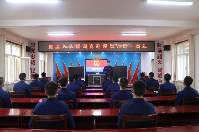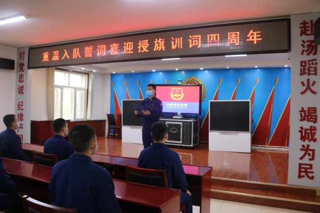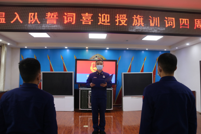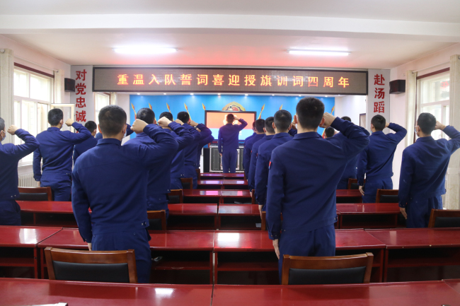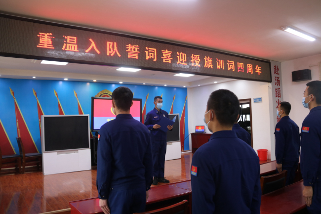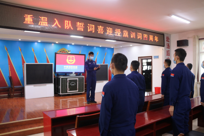 举行重温入队誓词宣誓活动是学习贯彻习近平总书记授旗训词精神四周年纪念活动的一项重要举措,对于充分展现新时代森林消防队伍改革转制后新队伍、新形象具有重要意义。活动中,叶彤指导员围绕“2018年11月9日,习近平总书记向国家综合性消防救援队伍授旗并致训词”光荣历史时刻进行讲话,教育引导全体指战员充分认识开展此次活动的目的、意义。随后,全体指战员在叶彤指导员的带领下,举起右手庄严宣誓。“我宣誓:我志愿加入国家消防救援队伍,对党忠诚、纪律严明、赴汤蹈火、竭诚为民,坚决做到服从命令……”,全体指战员庄严肃立,重温入队誓词,誓词声声,铿锵有力,表达了全体指战员始终牢记训词精神,奋力擎旗前行的坚定信念和信心决心,自觉担起时代重任,自觉把习总书记和党中央关怀、广大人民群众厚爱转化为努力工作的不竭动力。