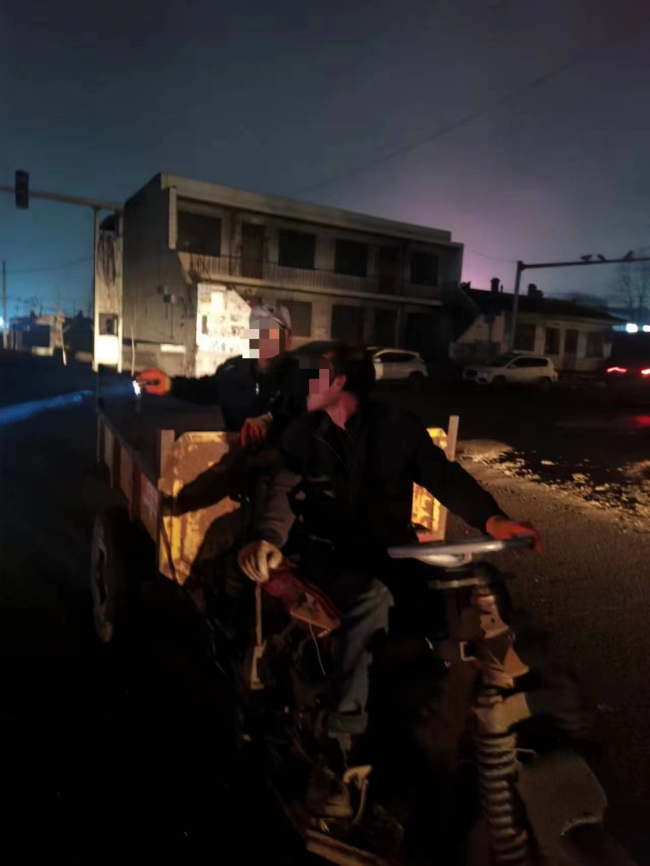 本网讯:(杨婷)2022年11月9日,蒲县公安局交警大队乔家湾中队民警在辖区开展执勤执法工作,20时42分左右,一辆无牌号违法载人三轮车驶入民警的眼帘,民警立即示意该驾驶人停车接受检查。