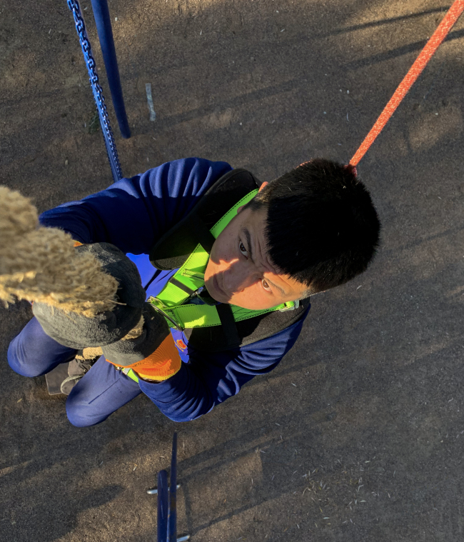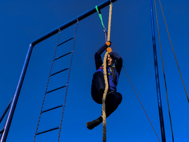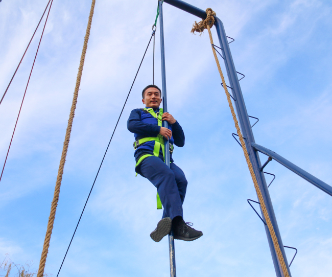 “哈!”随着一声爆喝,再热代如同射出去的弹弓一般高高跃起,一把抓住麻绳将身子向上一收,卷缩成一团,双脚在离双手很近的地方快速将绳子缠住,腰间一用力在绳子上站了起来,双手向更高的点抓去……