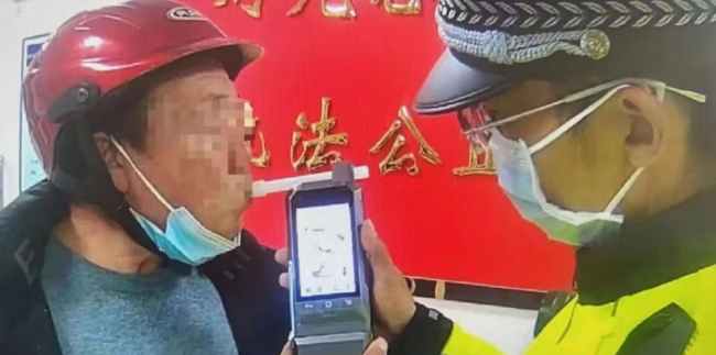 本网讯:(杨婷)2022年10月4日17时45分左右,蒲县公安局交警大队城关中队民警在蒲县桃湾村处路查路检,在对一辆二轮摩托车进行检查时,发现驾驶人赵某某有酒后驾驶机动车的嫌疑。立即对赵某某进行呼气式酒精检测,检测结果为48mg/100ml,属饮酒后驾驶机动车、无证驾驶的违法行为,被民警当场查获。