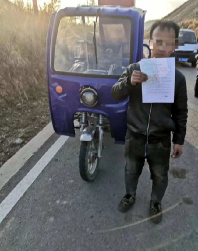 本网讯:(杨婷)2022年11月6日,蒲县公安局交警大队公路巡警中队民警在辖区开展执勤执法工作,16时30分左右,一辆无牌号违法载人三轮车驶入民警的眼帘,民警立即示意该驾驶人停车接受检查。