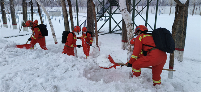 本网讯:(康冀)近日,受冷空气持续影响,新疆各地陆续迎来降温降雪天气,为全面做好低温雨雪冰冻灾害防范应对和救援准备,新疆阿勒泰地区富蕴县森林消防大队严密组织低温雨雪冰冻灾害救援拉动演练。