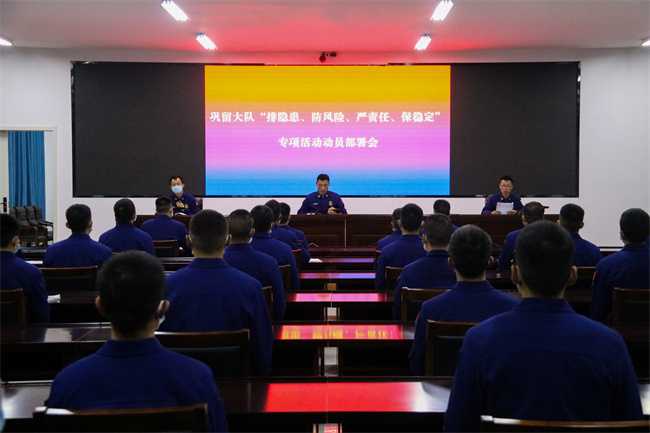 本网讯:(魏富满 巴合德尔)为确保今年年度工作安全收尾,新年度工作平稳开局,根据支队统一安排部署,近日,巩留县森林消防大队组织召开“排隐患、防风险、严责任、保稳定”专项活动动员部署会。