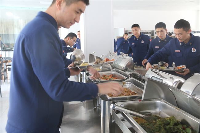 为有效提高大队日常伙食管理质量,切实让指战员吃饱、吃好、吃出标准、吃出健康,持续巩固和深化伙食管理规范年活动成效,结合驻地疫情实际安排专人适时进行市场供应调查,严把采购数量、品种和质效关口,合理制定米面蔬菜、食用油、各种配为一体的主副食品采购计划,坚持把食物采购验收、厨房值班帮厨,战备食品管理等制度贯穿于全程,有效避免采购物资过期或存放不当发霉变质等浪费问题发生。认真规范炊管人员配餐、操作和留样工作流程,固树立热情服务理念,全面强化提升炊管人员责任心与烹调技能,坚决杜绝发生“盐多醋少、量多味拙”等个人操作失误、饭没出锅就进垃圾桶的不良现象存在,从源头上杜绝灶台浪费。同时,充分发挥经济民主组能动作用,结合秋冬防战备工作、岗位大练兵活动、季节气候变化和不同地域指战员饮食习惯等实际需要,广泛征求指战员意见建议,坚持定期召开经济民主会精心制定周食谱,注重营养均衡搭配、膳食平衡、口味调配和花样制作,多做一出深受欢迎的“可口菜”“家乡菜”、少一些“冷门莱”“无味菜”,把实行自助就餐和落实周会操制度有机结合起来,在提倡节约、厉行节约和全员节约的基础上,切实把伙食保障“半个指导员”的作用体现在日常、发拌到极致。