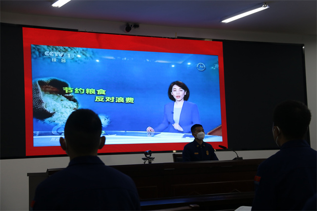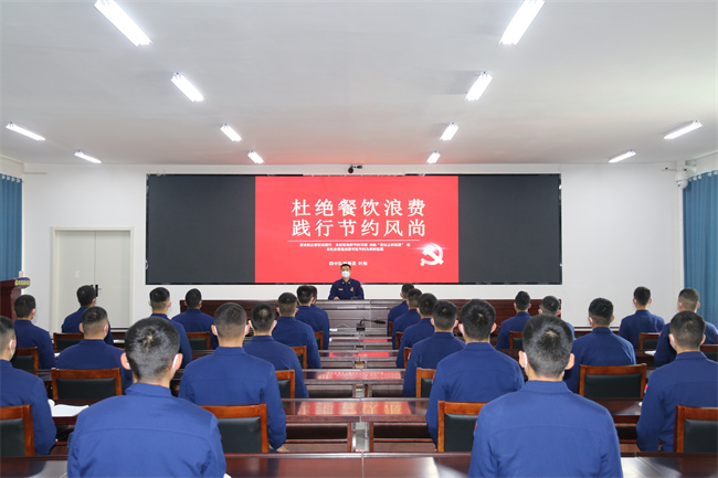 大队高度重视制止餐饮浪费、厉行勤俭节约工作,及时召开全体指战员大会,对上级纪委下发通知精神第一时间进行传达学习,召开党委(支部)会议结合大队实际认真研究制定贯彻落实措施,结合学习党的二十大精神和驻地疫情防控政策实际,围绕“党员干部骨干如何带头宣传、专业岗位人员怎样躬身践行、队伍普通一员如何全心融入”三个方面,以“人人上讲台”活动为载体,在队伍上下组织“全面节约大家谈”讨论活动。专门安排政治指导员叶彤同志以“杜绝餐饮浪费、践行节约风尚”为主题,围绕“遏制餐饮浪费刻不容缓、制止餐饮浪费当破三大误区、厉行勤俭节约反对舌尖上的浪费和行动起来遏制舌尖上的浪费”等四个方面开展专题辅导授课。同时通过饭前小演讲、日常随机教育、故事分享会等形式多样的配合活动,讲一讲当前世界粮食生产情况、根食危机和粮食安全形勢,说一说我国餐饮浪费的严峻形势,谈一谈生活中如何厉行勤俭节约、珍惜一粥一米,力求全方位、多角度引导全体人员树立过“紧日子”的思想,自觉把勤俭节约、艰苦奋斗的理念内化于心,外化于行,珍惜每一餐饭,节约每一粒粮,切实做到人人厉行勤俭节约、时时制止餐饮浪费。