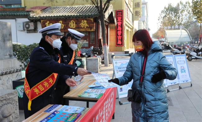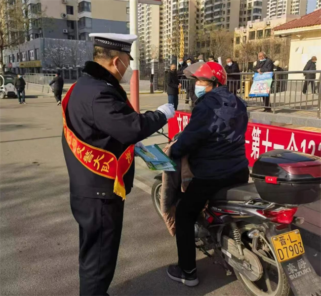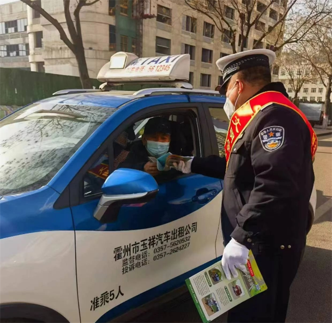 霍州大队民(辅)警聚焦道路交通安全,通过悬挂标语、摆放展板、发放宣传资料等多种形式,向道路交通参与者普及道路交通安全知识,并针对日常出行特点,详细讲解了驾驶电动车不佩戴安全头盔、闯红灯、逆行,驾驶机动车酒醉驾、闯红灯、无证驾驶、疲劳驾驶等交通违法行为的危害性,教育引导广大道路交通参与者从自身做起、从细节做起,自觉抵制交通违法行为,文明礼让、平安出行。
