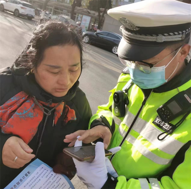 活动中向来往行人讲解“一盔一带”“农用车、三轮车违法载人”“农村分级分类管理”等宣传材料并将宣传品发放给群众。同时,民警使用“交通安全系统小程序”对未佩戴头盔的电动车驾乘人进行登记教育。利用辖区内典型事故案例以案说法,在潜移默化中提高群众的交通安全意识。