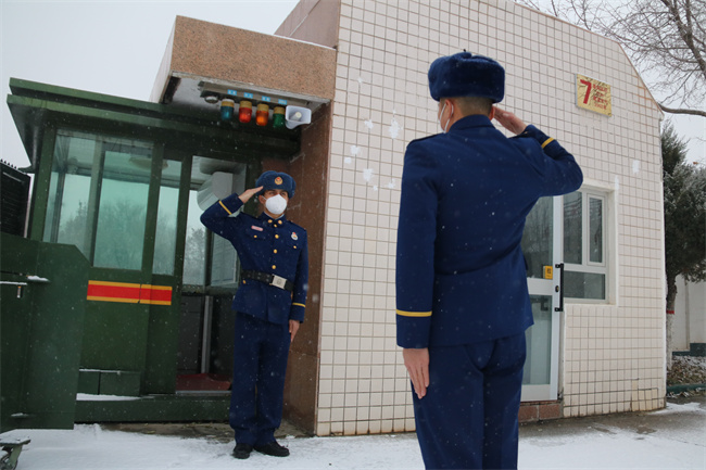 组织全体指战员到营门哨位进行现地规范,认真教育并要求岗哨人员按规定着冬常服、戴大檐帽及N95口罩,随后规范交接岗程序,并要求保持队容严整,注意礼节礼貌,体现良好的精神状态,维护好消防队伍的良好形象。