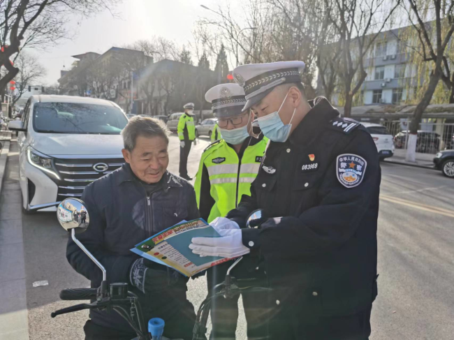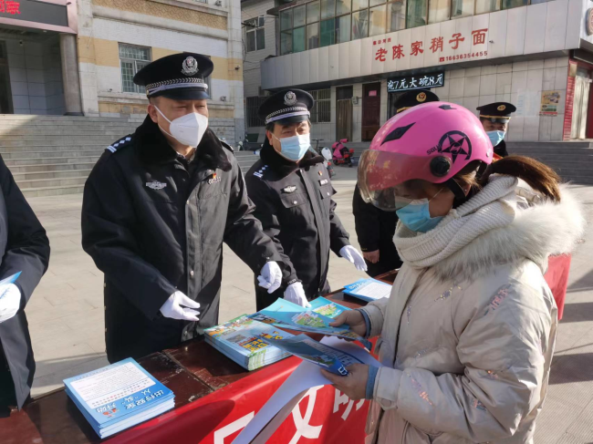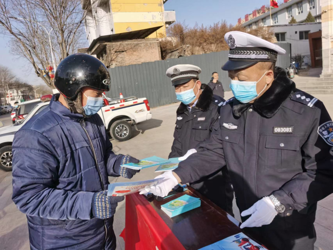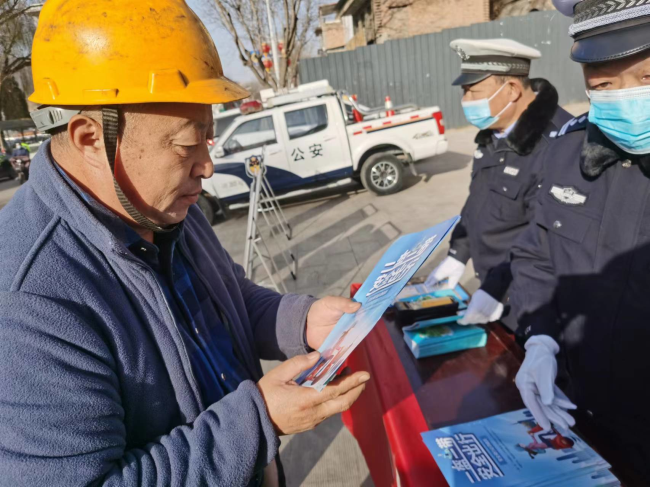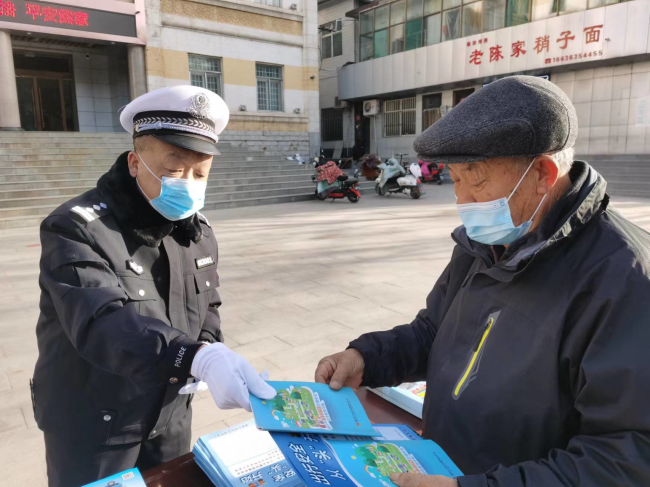 活动中向来往行人讲解“一盔一带”“农用车、三轮车违法载人”“农村分级分类管理”等宣传材料并将宣传品发放给群众。同时,民警使用“交通安全系统小程序”对未佩戴头盔的电动车驾乘人进行登记教育。利用辖区内典型事故案例以案说法,在潜移默化中提高群众的交通安全意识。
