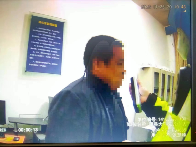 本网讯:(杨婷)2022年10月26日20时左右,蒲县公安局交警大队克城中队民警在克罗线1公里处路查路检,在对一辆摩托车进行检查时,发现驾驶人任某某有酒后驾驶机动车的嫌疑。立即对任某某进行呼气式酒精检测,检测结果为31mg/100ml,经询问加电脑查询,任某某属因饮酒后驾驶机动车被处罚,再次饮酒后驾驶驾驶机动车的、无证驾驶的、驾驶摩托车时未戴安全头盔的违法行为,被民警当场查获。