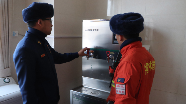 这次“回头看”工作首先针对上次存在的用水用电问题进行了细致检查。对于上次发现的电箱内线头裸露、电线上灰尘油脂过大、电线线路混乱等用电问题进行了检查验收,并针对各中队用电情况提出明确要求。对于用水安全,针对上次发现的水管表面老化锈损的问题,大队通过更换锈损零件,并喷漆防腐的方式进行了整改。近日,阿勒泰地区冷空气来袭,日最低气温通常低于零下20℃,为防止暖气管道被冻造成供暖问题,大队对部分公共区域的窗户贴上了封条,防止因人员疏忽导致窗户常开,从而造成暖气管道损坏。