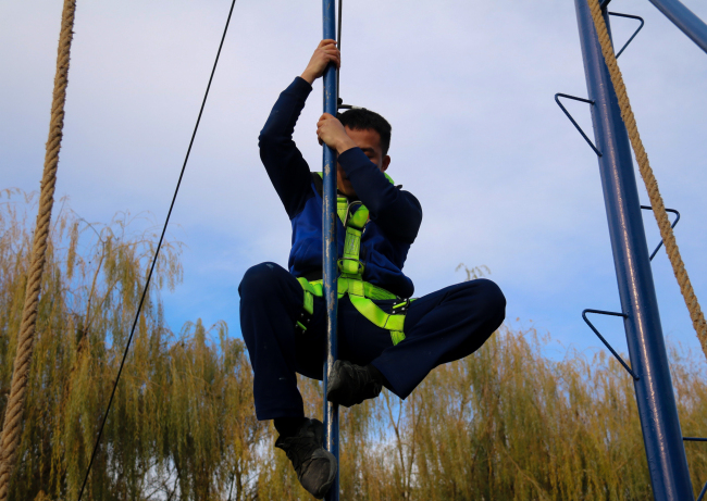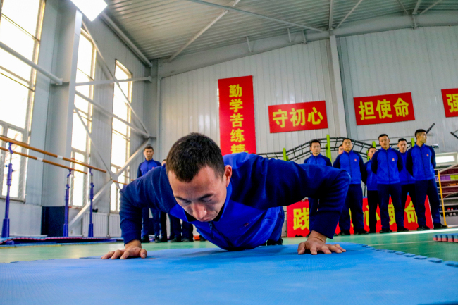 勤进行耐寒锻炼,如拉几个单杠、做几组波比跳、跑一个五公里等等,对于“蓝朋友”们来说,“没有什么是一个五公里解决不了的,如果有,那就两个!”运动不仅可以促进血液循环,增强免疫力,还可以提高人体对寒冷的忍耐性。一眼望去,训练场上的“蓝朋友”们好像蒸笼一样,腾腾的冒着热气。四百米综合体能竞技,热!灭火综合演练,热!负重五公里,热!除了热还是热,冷?不存在的!寒风依旧肆虐,可那又怎样,依旧抵挡不住他们训练的热情,更挡不住那颗热血沸腾的心。