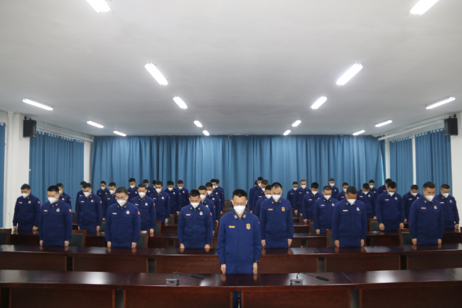 感悟历史,警钟长鸣。为告慰所有在南京大屠杀惨案中不幸遇难的同胞,上午10时,全体指战员容装严整、神情庄重,列队默哀一分钟,对遇难同胞的深切缅怀,对革命先烈的无尽哀思和崇高的敬意,随后进行宣誓活动:“我志愿加入国家消防救援队伍,对党忠诚……”。庄严的宣誓声在营区中回荡,铮铮誓言表达了指战员们的报国之志,以及练就过硬本领的坚定决心。