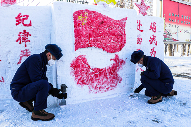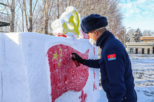 一道道冰雪靓丽风景线给营区增添丰富的文化色彩,极大丰富队员的文化生活,提升队员生活品质的同时培养了队员的艺术细胞,激发了工作动力,为下步各项工有序开展奠定了坚实基础。