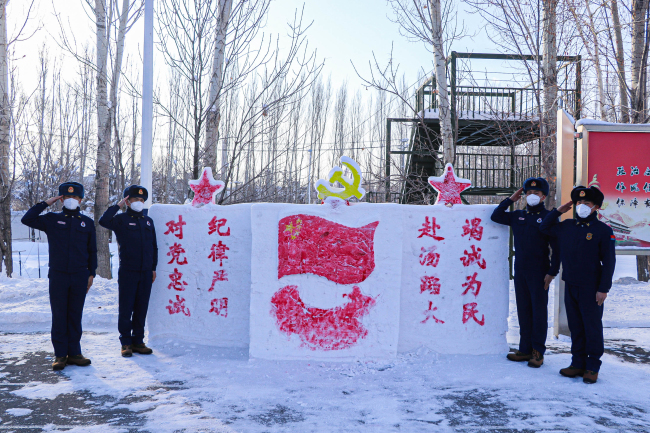 本网讯:(周宇)银装素裹漫天雪,冬日景致更胜春。为充分展现北疆森林消防队伍风采,进一步丰富队员的业余文化生活,继承发扬优良文化传统,近日,新疆阿勒泰地区森林消防支队富蕴大队积极发挥冰雪文化铸魂励志功能,用冰雪描绘一幅美丽画卷。
