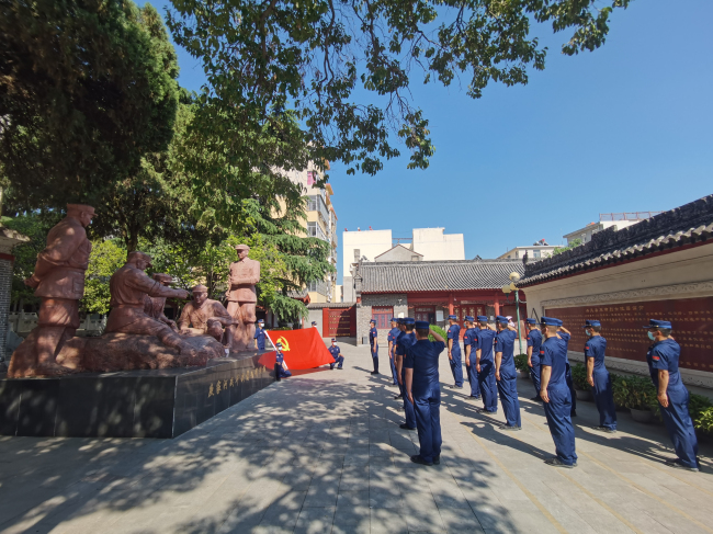 这一年,大队全体消防救援人员矢志不渝践行“对党忠诚”这个建队之魂,始终将党的政治建设置于首位,作为统领队伍建设发展的“纲”和“魂”,真正把授旗训词精神转化为广大消防救援人员的思想价值核心,转化为队伍转型升级的内生动力。积极协调驻地资源,以红色爱国主义教育基地为抓手,开拓学习教育方式,组织全体消防救援人员参观红二十五军革命遗址、可可托海三号矿坑、博物馆等红色基地,让大家切实学习和感受到革命前辈的艰辛与不易,深植红色基因,汲取前进动力,让每名消防员在自我教育中提升认知水平和思想境界。