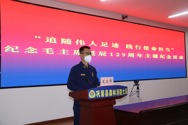 为深切缅怀伟大领袖毛泽东,感悟老一辈的革命精神,增强爱国热情,弘扬革命精神,12月26日,巩留县森林消防大队开展“追随伟人足迹,践行使命担当”纪念毛主席诞辰129周年主题活动。
