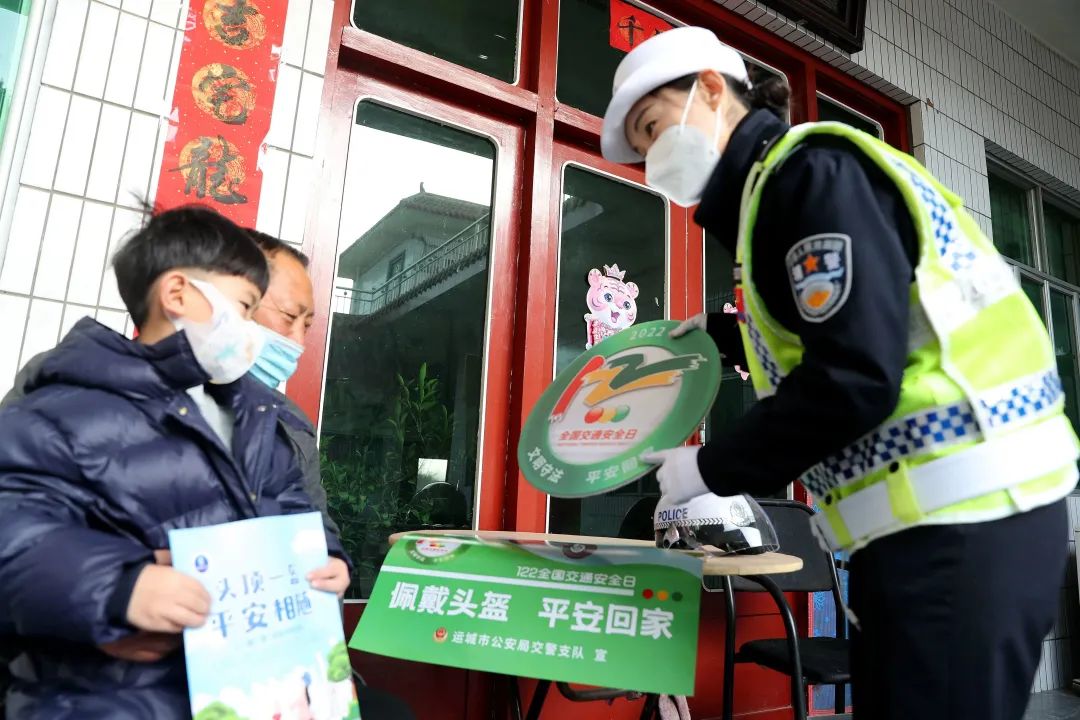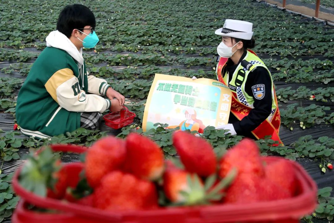 运城公安交警走进草莓采摘园给群众讲解冬季安全出行常识。活动中,民辅警和群众聊收成,话年景,边散发资料,边讲述近期身边发生的事故案例,向他们讲解酒驾、无证驾驶、超员、三轮车违法载人等交通违法行为的危害,提醒大家遵守交通法律法规,时刻做到文明出行。