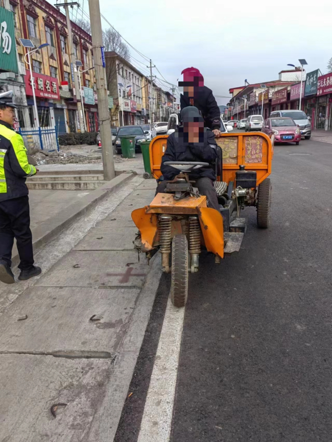 本网讯:(杨婷)2022年12月11日,蒲县公安局交警大队乔家湾中队民警在辖区开展执勤执法工作,14时49分左右,一辆无牌号违法载人三轮车驶入民警的眼帘,民警立即示意该驾驶人停车接受检查。民警对三轮车违法载人典型事故案例向驾驶员及乘车人讲解了三轮车载人的危险性和危害性,提示他们在今后出行中一定要遵守交通法律法规,禁止三轮车违法载人。