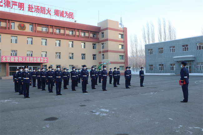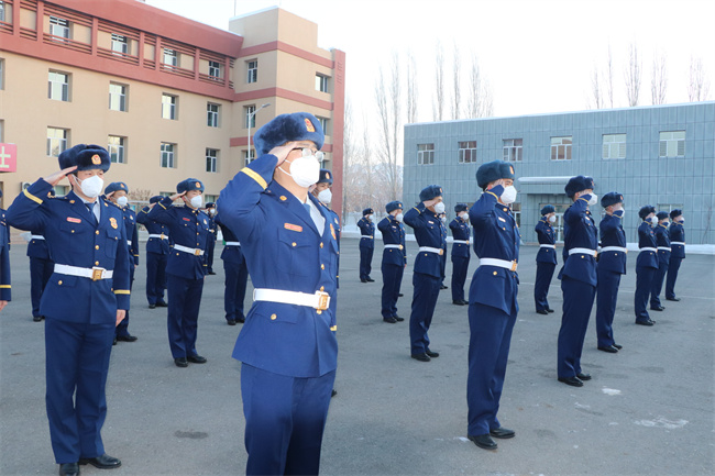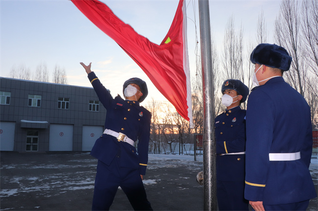 本网讯:(康冀)新年伊始,万象更新。迎着清晨的第一缕曙光,新疆阿勒泰地区森林消防支队富蕴大队全体消防救援人员齐聚国旗台前,举行元旦升旗仪式,迎接新年的到来。