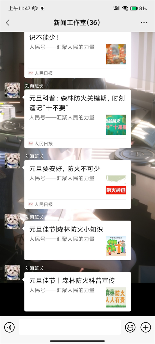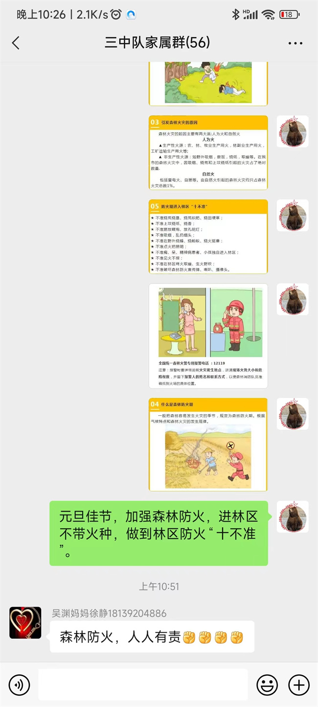 “这些防火知识的确有很大用处,我也转发到家族群里面让亲戚朋友们学习学习。”指战员们通过家长群、朋友圈、好友推送等广泛宣传森林草原防火常识,不断提升人民群众防火意识、忧患意识和防灾减灾理念。