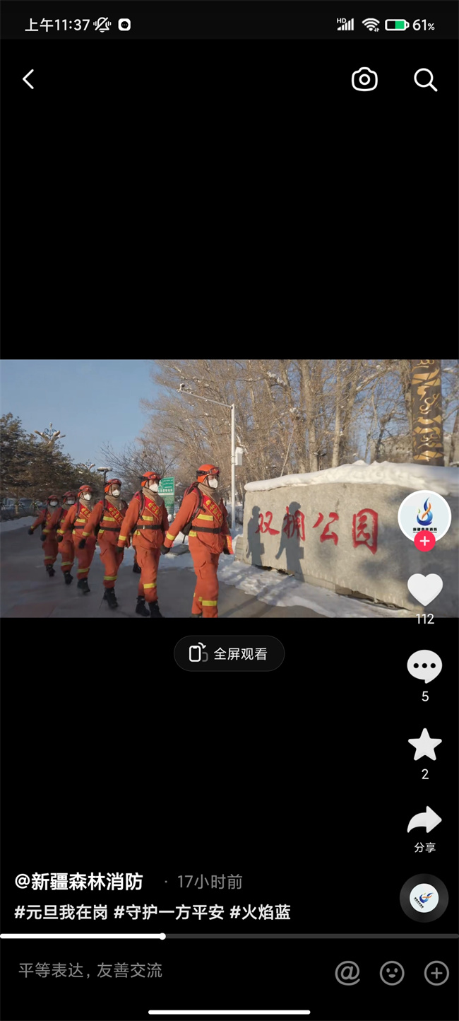 本网讯:(孟庆闯 吴渊)“元旦”期间,人员流动幅度大、燃放烟花爆竹增多,为进一步提升广大群众森林防火意识,推进元旦期间防火宣传走深走实,连日来,伊犁州森林消防支队巩留大队结合实际,利用各式渠道积极开展线上防火宣传活动。