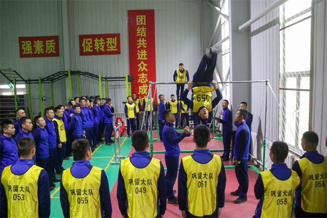 器械训练场上,加油、呦呵声更是让体内肾上腺素飙升着,班长们总是有着高超的语言技术,喊出的每一嗓子“再拉一个”能让你迅速“回血”就像是刚开始拉第一个一样充满力量。“这一个奖励自己,这一个是为了班级荣誉……”就这样,通过日积月累,从原来单杠上的“吊腊肉”一步一步变成“杠上起飞的小钢炮”,不知不觉间从不及格到及格,再到良好、优秀,“再拉一个!”却仍然如影随形,即使班长不再吆喝,只要是咬牙坚持的关头,这声音就很清晰地回荡在耳畔。