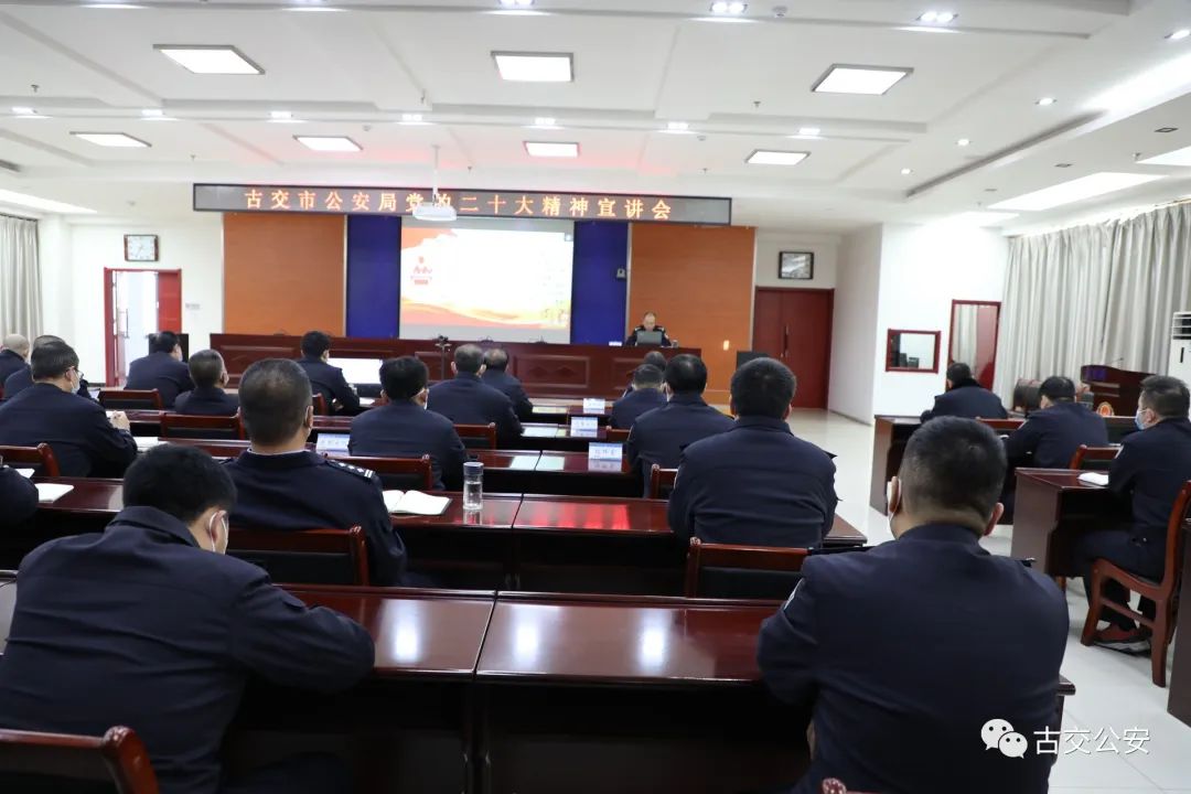 宣讲会上,王治国同志从深刻理解领会党的二十大的重大意义、党的二十大主题所蕴含的丰富内涵、党的二十大报告主要精神、学习贯彻党的二十大精神做到五个“牢牢把握”、扎实推动党的二十大精神在古交公安落地生根开花结果五方面进行了宣讲,就贯彻落实上级部署要求,全面推动古交公安学习宣传贯彻党的二十大精神走深走实进行了动员部署。