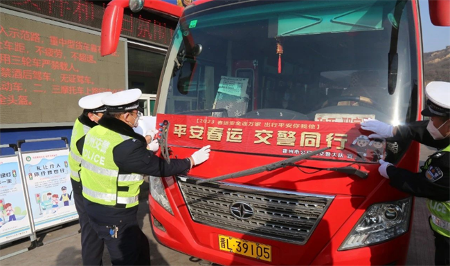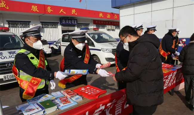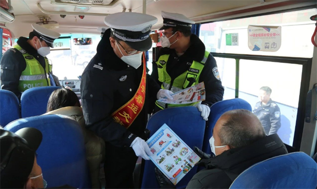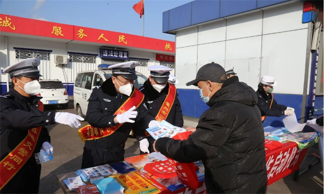 启动仪式上,副大队长朱敏对今年春运交通安全形势作了分析,并结合当前交通事故预防“减量控大”工作,介绍了春运工作目标和工作措施,要求全体民警、辅警靠前一步、主动作为,一要加强源头管理,督促企业落实好各项安全措施;二要深入推进交通安全大排查、大整治,消除安全隐患,三要加大违法查处力度,做好道路疏堵保畅,全力保障春运期间道路安全、畅通、有序。四要加强宣传引导,提升服务水平,为群众提供暖心便民服务。随后副大队长李玉平、刘亮,大队党总支委员、五中队中队长冯建平带领民警向广大司乘人员发放了春运交通安全宣传彩页、围裙及手提袋等宣传品,叮嘱驾驶人确保安全驾驶,确保安全出行,并通过讲解交通安全知识,解答群众咨询,悬挂横幅、摆放版面、张贴春运宣传海报、在客运车上张贴春运安全标识等多种形式,最大限度地扩大此次春运交通安全宣传的覆盖面和影响力,迅速掀起我辖区春运交通安全宣传高潮,为2023年春运道路交通安全工作开好头、起好步。