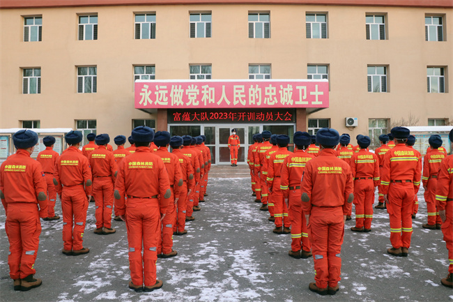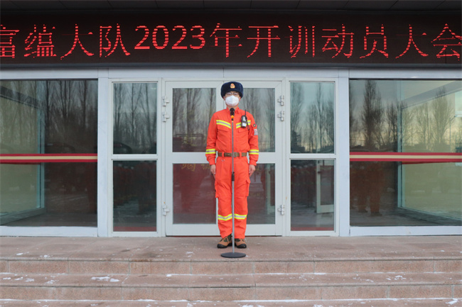本网讯:(杜焌)为深入贯彻落实总队、支队开训动员会精神,近日,新疆阿勒泰地区森林消防支队富蕴大队认真组织2023年度开训再动员,进一步深层次搞好思想发动,激发全体人员训练热情,确保队伍新年度训练工作稳步开局、高效展开。动员由陈勇教导员组织,全体消防救援人员参加。