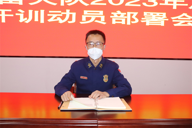动员会现场,队员们正襟端坐、精神抖擞、斗志昂扬,决心以新年度开训动员为起点,按照建设综合性应急救援“国家队”和“主力军”的目标,磨砺顽强作风、锤炼过硬本领。会上,刘杰教导员对新年度训练工作进行了动员部署,指出:一要把训练作为经常性工作和提高战斗力的根本途径,向实战聚焦用力,坚持干部带头,以上率下,以模范行动带动和促进训练工作有效落实;二要坚持按纲施训、全员参训从严治训,大力开展实战化训练,严格训练考核和检查督导,提升训练质量和层次;三要运用多种教育激励手段,激发全体指战员的训练热情。坚持抓好每月“创纪录、争标兵”活动,落实训练奖惩制度,培树训练典型,进一步浓厚训练有为、训练有位的竞争良好氛围,不断厚实大队训练工作底蕴。