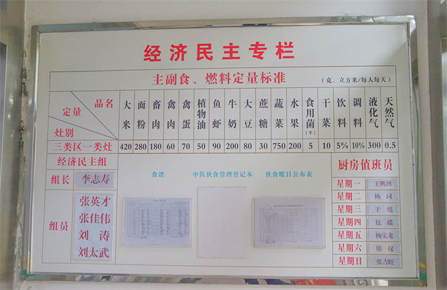 大队高度重视伙食保障工作,始终把伙食管理作为经常性、基础性工作来抓,在新消防员入营后,充分发挥新消防员主体地位作用,适时组织问卷调查,广泛征集伙食意见,本着“早餐讲营养、中餐保质量、晚餐须全面”的原则,合理制订营养均衡、丰富多样的餐谱,在菜品制作上,采取炒炖结合、凉热搭配的方法,粗粮细做、细粮精做,并重点在小菜、调料、副食上下功夫,确保每天都有新花样、每餐都有新特色。针对新消防员地域饮食习惯不同,众口难调的客观实际,大队定期推出家乡菜、特色菜、无论是“重口味”还是“清淡香”,新消防员都能在餐桌上找到属于自己的“口味”,同时,根据训练强度确定荤素搭配,结合食材种类,确定主食花样、在兼顾营养均衡的基础上,多做大家喜欢吃的菜品,确保一步到“胃”。“虽然身处西北戈壁,但总能在食堂吃到家乡的味道,这让训练的一天的我们心里暖暖的。”来自甘肃籍的新消防员方子豪说道。此外为实现饮食由“温饱型”向“营养型”的转变,大队注重炊事人员水平提升,在休息时间利用小红书APP、抖音短视频等载体学习特色菜品的制作方法,进一步改善营养结构,提高菜品数质量,无论从选材到烹饪方法,从口味到色彩,都作了精心设计,力求精致完美地烹饪出营养佳肴。