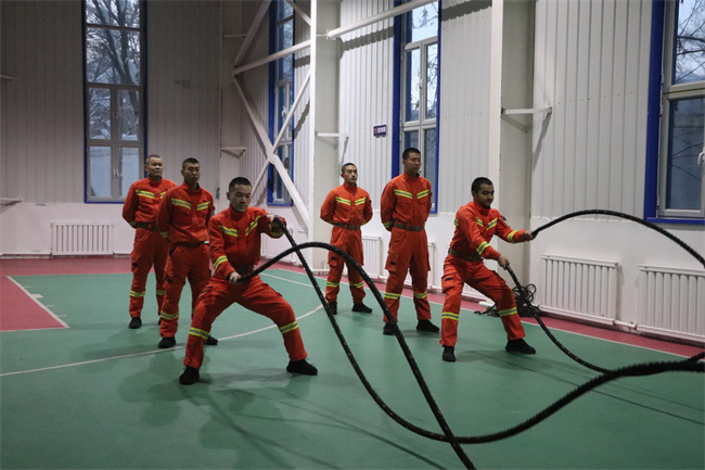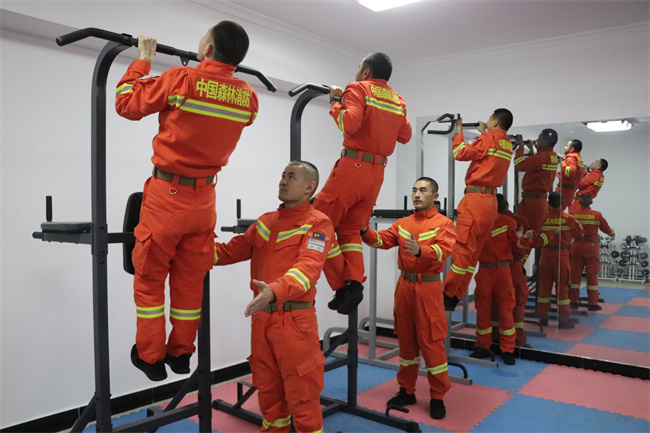 本网讯:(周宇)为进一步打牢队员体能素质基础,全面提升体能训练水平,近日,新疆阿勒泰地区森林消防支队富蕴大队扎实开展体能训练。