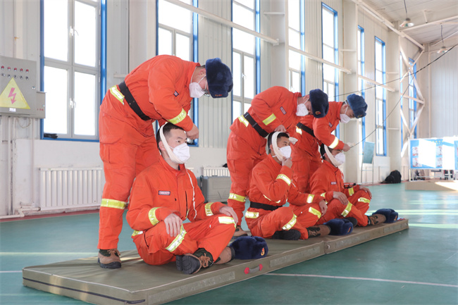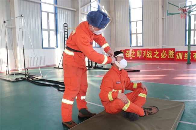 全体人员姿态端正、认真观摩,而后逐人进行操作实践,对于做错次数多的救援人员,不厌其烦的手把手帮带,确保每名救援人员都能熟练掌握技能。