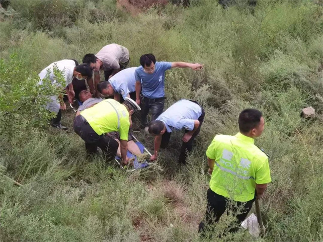 2022年8月15日早上6时许,西坡中队接到交警大队指挥中心指令,枣岭乡白岭村路口发生交通事故人员受伤情况不明,中队民警迅速赶赴现场,看到车坠入十多米深沟驾驶员被甩出车外,沟深坡陡无路可走,中队民警立即找来铁锹挖土开路,由于驾驶员受伤不便行动,立即招呼过路群众把受伤驾驶员固定在单架上,并合力将其抬到救护车上,为伤者接受治疗赢得了黄金时间。