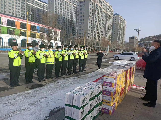 最后,向一线民警送去慰问品及新春的祝福!民辅警们感受到领导们的关心和温暖,备受鼓舞,将继续发扬吃苦耐劳、连续作战的优良作风,绝不辜负人民群众的期望,全力保障春节期间道路交通稳定和人民群众平安出行。