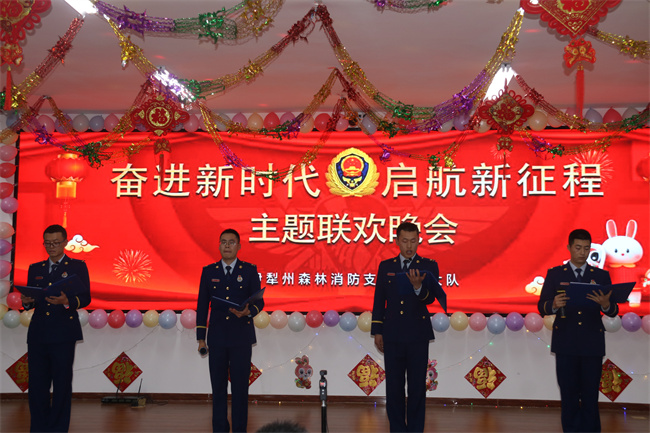 晚会开始前,刘杰教导员代表大队党委向共建单位的代表和各位来宾表示热烈的欢迎,向全体消防救援人员致以节日的祝贺和崇高的敬意,向全体家属们致以最亲切的问候和衷心的感谢。他指出,2022年,是消防救援事业发展极不平凡的一年,也是大队砥砺奋进的一年,在局、总队和支队党委和地委行署的坚强领导下,举旗铸魂、拼搏进取,圆满完成了各类灭火救援、抢险救灾、防火执勤等重大任务,队伍能力、形象得到各级党委政府和驻地各族群众的高度赞誉。他表示,新的一年将以更加坚定的自信、更加饱满的热情、更加有力的行动,为守护各族人民群众幸福平安不懈奋斗。
