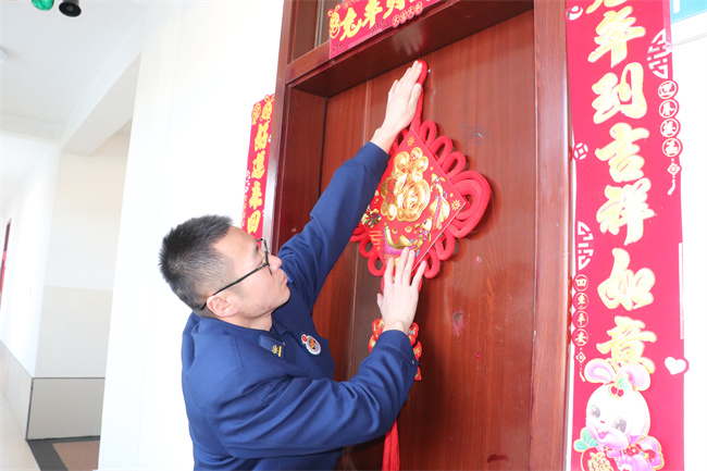 本网讯:(孟庆闯 付岩)春节,一年中最隆重的节日,是记忆里永不退色的中国红。在这个灯火阑珊,万家团圆的日子里,仍在岗位上坚守的森林消防指战员们也有属于自己的温暖。此时在巩留县森林消防大队营区里,灯笼、春联、福字、中国结……随处可见的中国红景象,神奇地拼凑出了浓浓的“年味”。