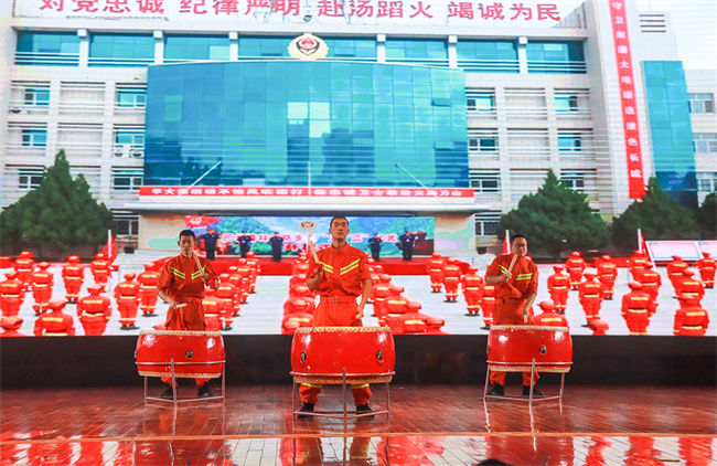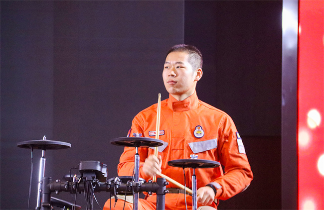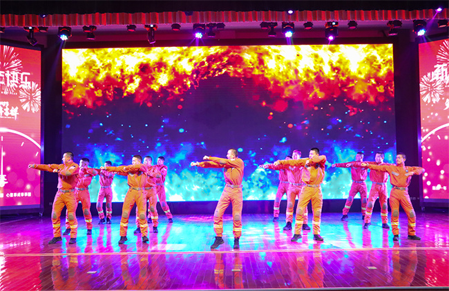 总队政治部孙锦社主任莅临文艺演出现场,并代表总队党委首长亲切慰问新训大队全体指战员并一同观看演出。大队教导员张劲松作新春致辞,同时,向一如既往关心支持应急救援事业的指战员家属表示衷心感谢。并寄语全体新训干部骨干和新队员们在新的征程上、要以饱满的精神、昂扬的斗志和必胜的决心,合力推动新招录消防员入职训练工作实现新突破、再上新台阶,鼓励同志们要以满腔的热情、十足的干劲,昂首阔步、奋勇拼搏,做到无悔青春。晚会在激情热血的开场鼓《男儿当自强》中拉开帷幕,随着激情澎湃的鼓声渐声渐起,演出现场顿时增添了些许年味。