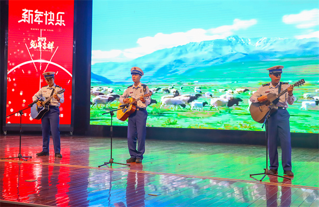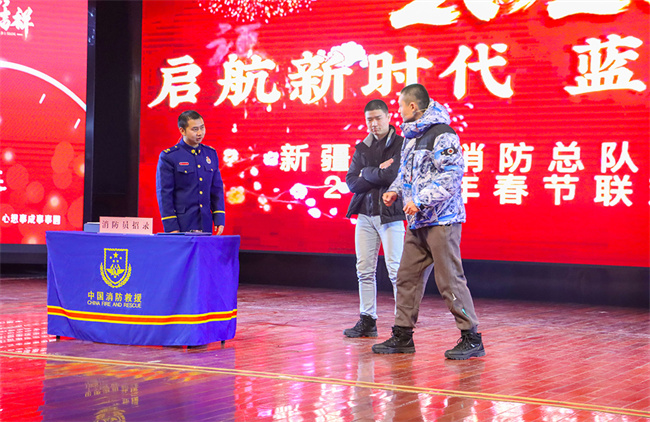 本网讯:(李涛 杨长红)虎振雄风留浩气,兔迎盛世启新程。新春佳节来临之际,为进一步丰富队伍文化生活,营造欢乐祥和、喜迎新春的浓厚氛围,1月19日,新疆森林消防总队新训大队自编自演的“启航新时代·蓝焰新征程”迎新春文艺演出精彩上演。大队全体新蓝和新训干部骨干及部分家属欢聚一堂,载歌载舞,共同迎接新春佳节的到来。