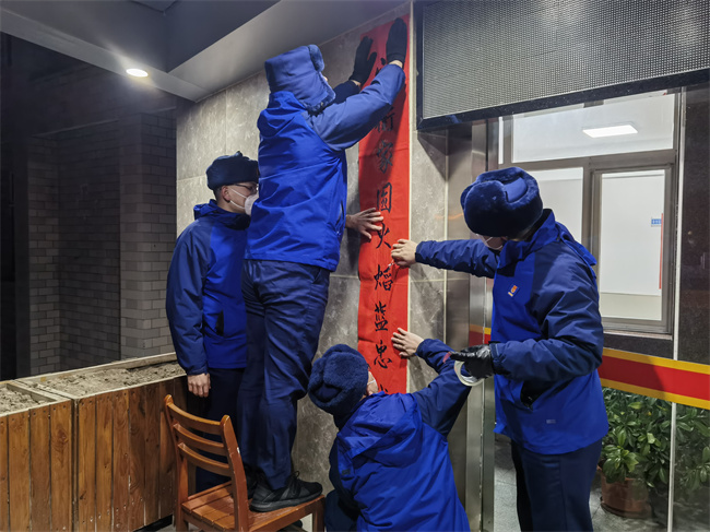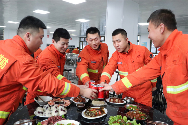 今年春节,支队党委高度重视节日期间文化活动的开展,认真制定活动实施方案,本着“活动多样、形式新颖、氛围浓厚、简朴大方”的原则,广泛征求指战员意见,并结合大家的心理特点、兴趣爱好和需求,认真策划、精心准备,做到“全时覆盖、全员参与、全程互动”,让全体指战员“动起来、唱起来、赛起来、乐起来”。爆竹声声辞旧岁,万家团圆迎新年。除夕夜里,支队各级干部纷纷走上一线执勤哨位,从机关到基层、从党委首长到一线指挥员,用实际行动坚守“暖心哨”、值守“示范岗”,让指战员们度过了一个幸福温馨的“年三十儿”;支队机关、各大中队精心组织了春节会餐活动,让广大指战员、来对家属团员在大家庭里。