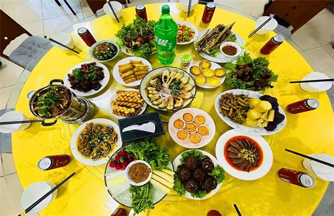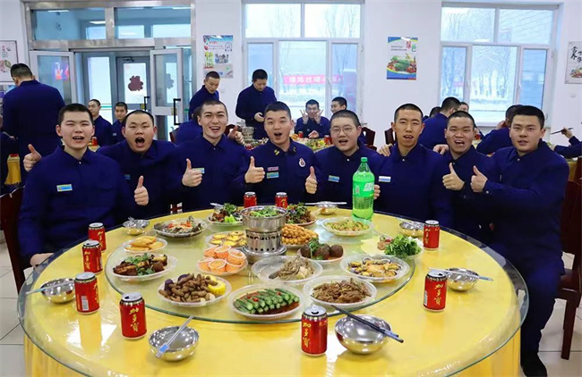大队党委高度重视节日期间队伍伙食保障工作,着眼实现伙食调剂“节俭不节制、丰富不浪费”的要求,提前对节日期间伙食保障工作提出了具体要求,各中队积极发扬经济民主征求新消防员的意见建议,立足现有条件,精心选购食材,同时严格落实伙食管理制度,并结合新消防员的饮食习惯和喜好特点,精心调剂伙食,荤素合理搭配,坚持做到“营养上求充足、花样上求新颖、口味上求最佳”,不断更新、丰富菜品种类,实现伙食品种多样化、饮食质量营养化、菜品搭配科学化,切实提高伙食质量,提供优质保障。最大限度满足了大家的饮食需求。餐桌上牛羊畜肉、鸡鸭鱼肉应有尽有,煎、炸、蒸、煮、烹、炖样样俱全。春节期间大队首长与来队家属及新消防员一起包饺子,到操作间帮厨,做出一道道美味的家乡菜,让大家吃出了“家”的味道。全体队员举杯共饮、食美味、话乡情,人人热情洋溢,处处欢声笑语,现场气氛融洽,氛围浓厚。丰盛的节日大餐,各具特色的菜肴,确保了春节期间新消防员吃得营养、满意、舒心,使全体指战员充分感受到大家庭的温暖,营造出了一个愉快、祥和、温馨的春节氛围。