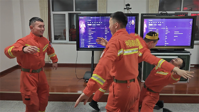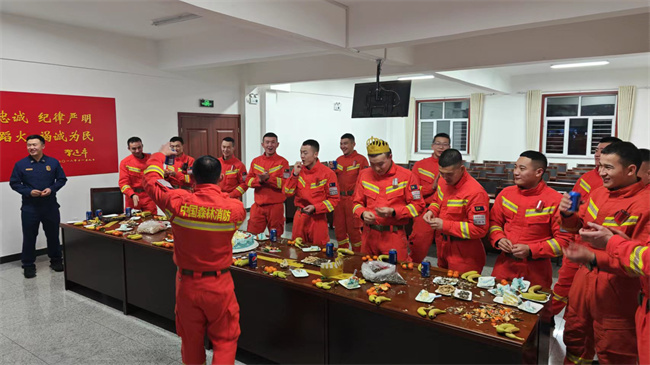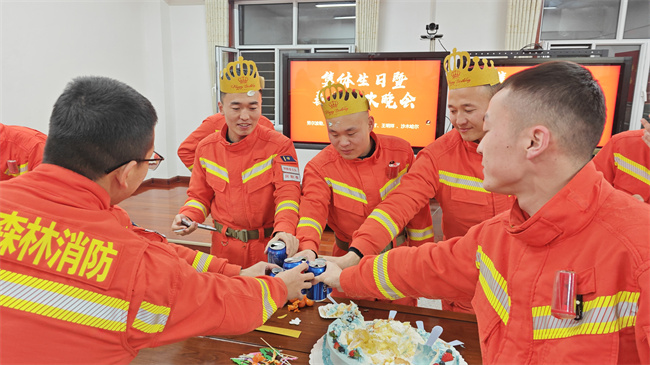 “祝你生日快乐,祝你生日快乐。”在祝福声中,大队为队员们组织了一场难忘的生日晚会,队员们载歌载舞,其乐融融。在这里,生日的陪伴已远远不止一首歌、一声祝福、一个拥抱那么简单,更多的是“领路人”的关心爱护和队友的同甘共苦。“这是我最难忘的一次生日,感谢队友们为我们准备的这份礼物,虽然没有家人的陪伴,但我此刻却感受到‘大家庭’的温暖和浓浓的情谊!”四级消防士沙木哈尔在晚会中说道。